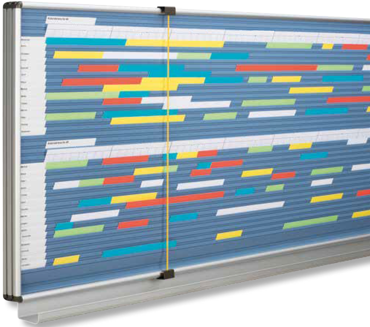 The board displays 2 weeks to view mounted one week above another. divided by an additional weekly date strip